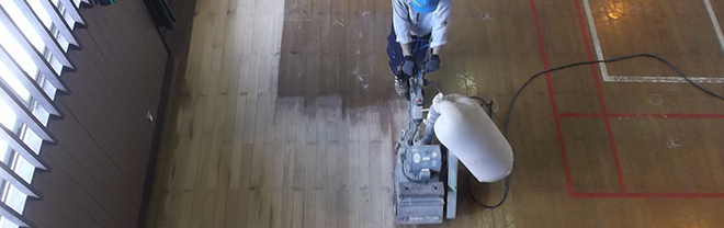体育館床工事のプロフェッショナル。床メンテナンス、ライン引き、床下地、床研磨塗装などフローリングから器具の直接施工会社です。